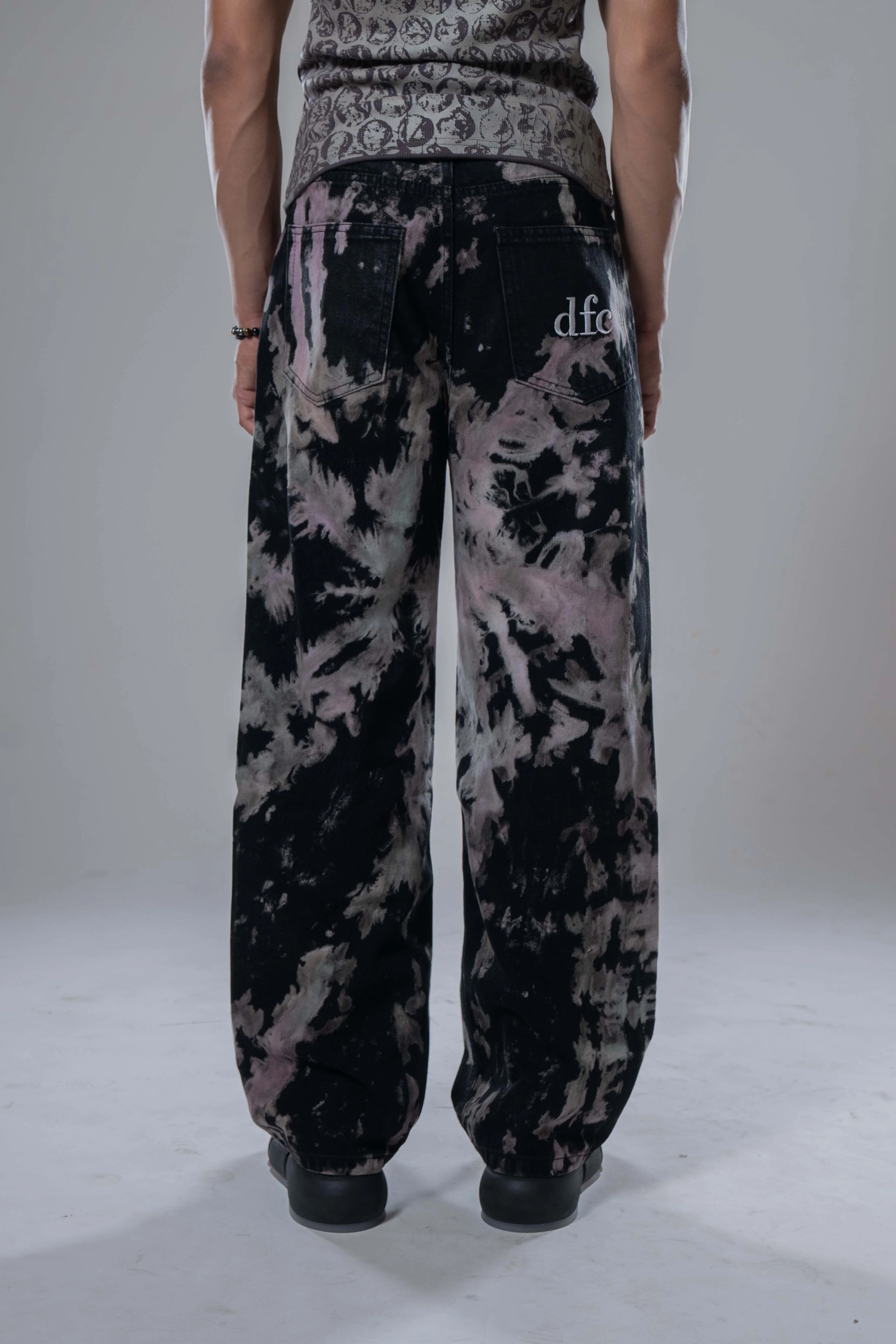 Straight-fit jeans with five pockets 100% cotton denim. Tiedye effect. Regular waist and a zip fly.