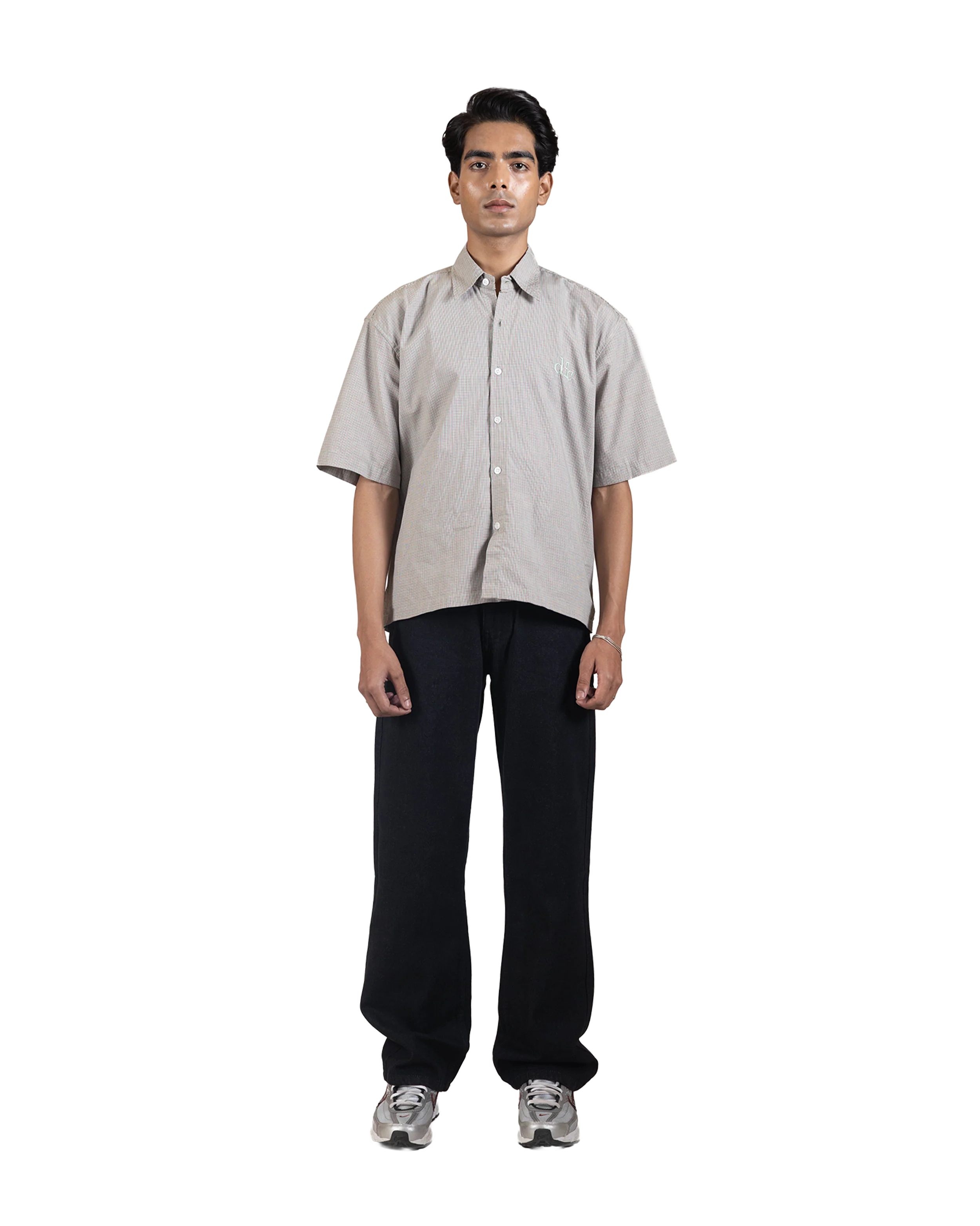 Relaxed fit shirt. Washed effect. 100% cotton lightweight, lapel collar, half sleeves.