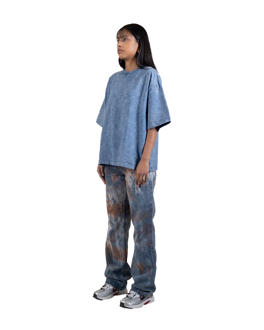 Relaxed fit T-shirt. Acid wash effect. 100% cotton, round neck, drop shoulder with front.
